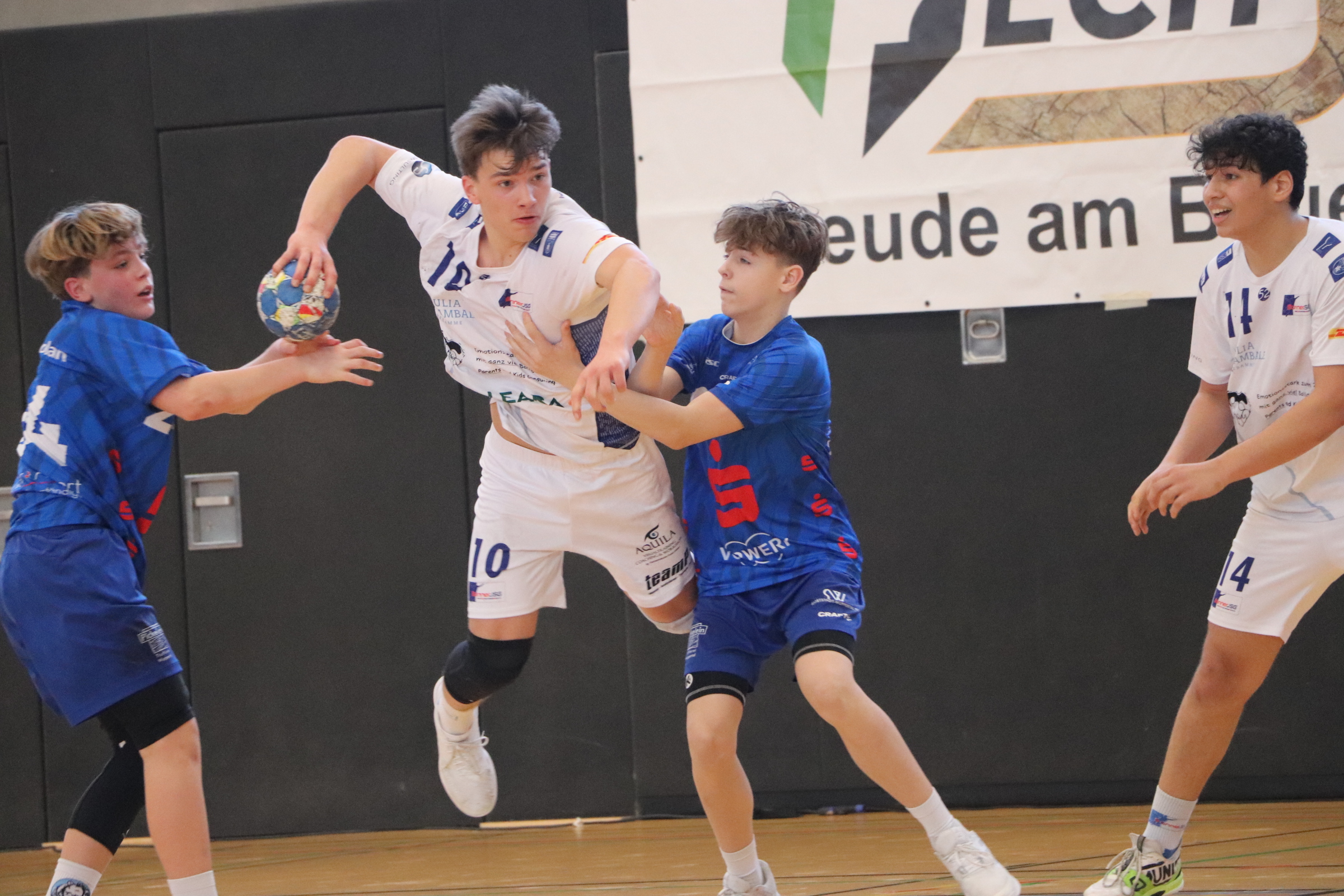 Durchgang zwei startete zunächst unverändert, allerdings schaffte man es die Fehler des BHC besser zu bestrafen. So robbte sich das Bonner Team09 Tor um Tor davon. In Minute 37 stellte Victor Ibarburu mit zwei schnellen Treffern in Folge erstmals auf +5 Tore Vorsprung. Gegen Ende der zweiten Halbzeit ließen die JSG-Jungs einmal die Muskeln spielen. Besonders Luka und Tom erwiesen sich zwischen Minute 40 und 45 als extrem durchsetzungsstark so zog man vier Minuten vor Spielende auf 28:19 davon. Leider schellte man für die letzten Spielminuten das Handballspielen nochmal vollständig ein und überließ dem BHC die Ergebniskosmetik.