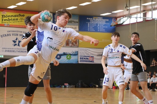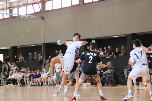 Das Spiel startete hartumkämpft. Die Bonner Abwehr stand prinzipiell gut, schaffte es aber zunächst zu selten die Kölner final am Torerfolg zu hindern. Offensiv fand man aber ab Sekunde eins gute Lösungen gegen die im Spielverlauf immer offensiver werdende Gästedeckung. Ab Minute neun beim Spielstand 6:6 schafften es die Esser-Jungs sich Stück für Stück von den Domstädtern abzusetzen. Es folgte ein 11:2 Lauf bis Minute 21. Das 17:8 durch Jonas wirkte auf die meisten Anwesenden wie eine Vorentscheidung. In dieser Phase spielte sich das Bonner Kollektiv in einen echten Rausch. Zahlreiche Ballgewinne wurden in einfach Umschalttore umgemünzt und die Defensive hielt nun auch über die gesamte Angriffslänge stand. Da man in der Folge leider fahrlässig mit dem eigenen Ballbesitz umging konnte der Gast das Ergebnis zur Pause auf 19:14 verbessern.