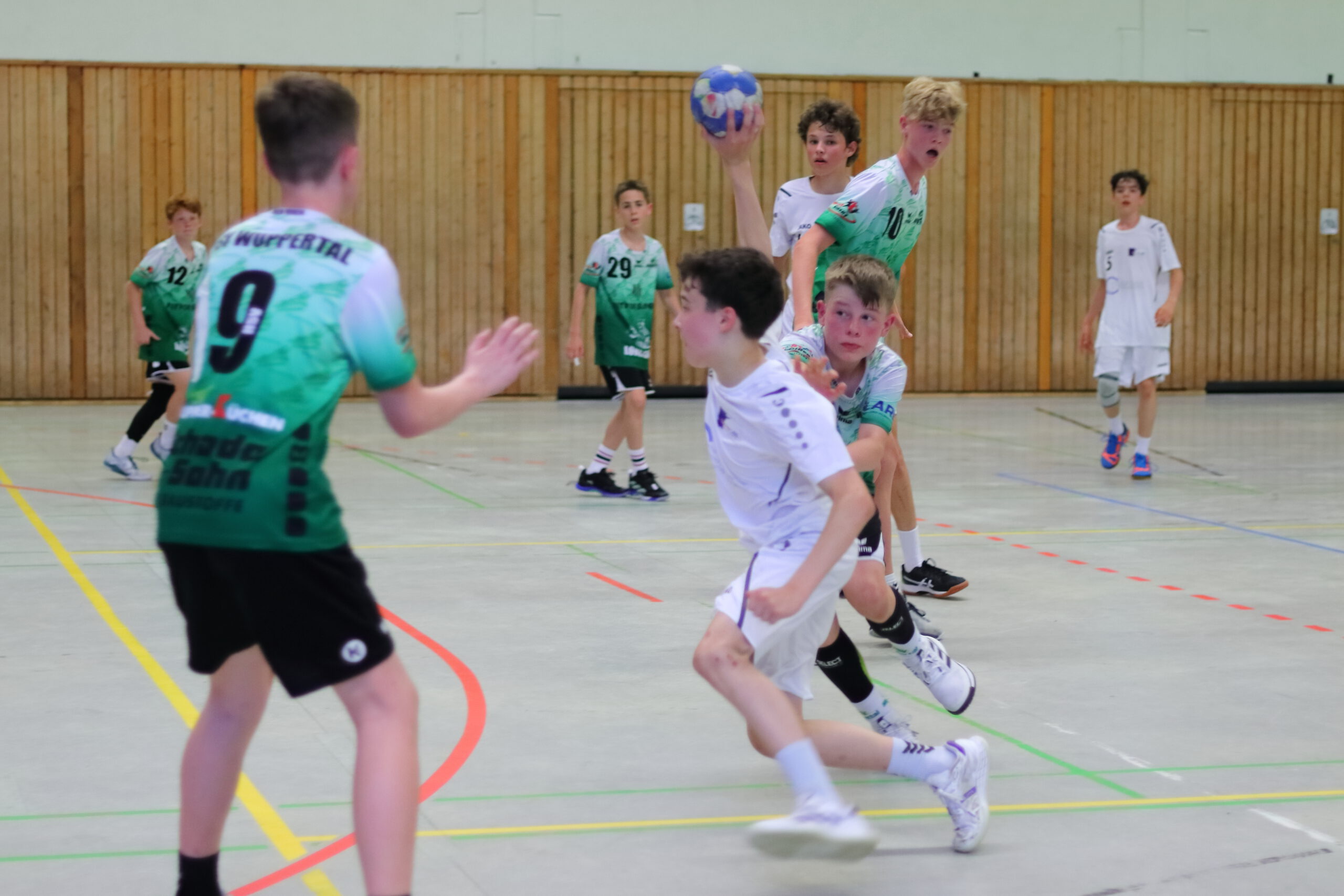 Endspiel Nummer 1: Matchball gegen den HSV Wuppertal. Ein unangenehmer, aber durch Testspiel bekannter Gegner stand im vorletzten Gruppenspiel auf dem Programm. Die Wuppertaler stellen eine gute kompakte Deckung und haben vorne ein klares Konzept. Guteingestellt uns bis in die Haarspitzen motiviert und heiß startete das Kollektiv aus der Bundesstadt ins Matchballspiel.