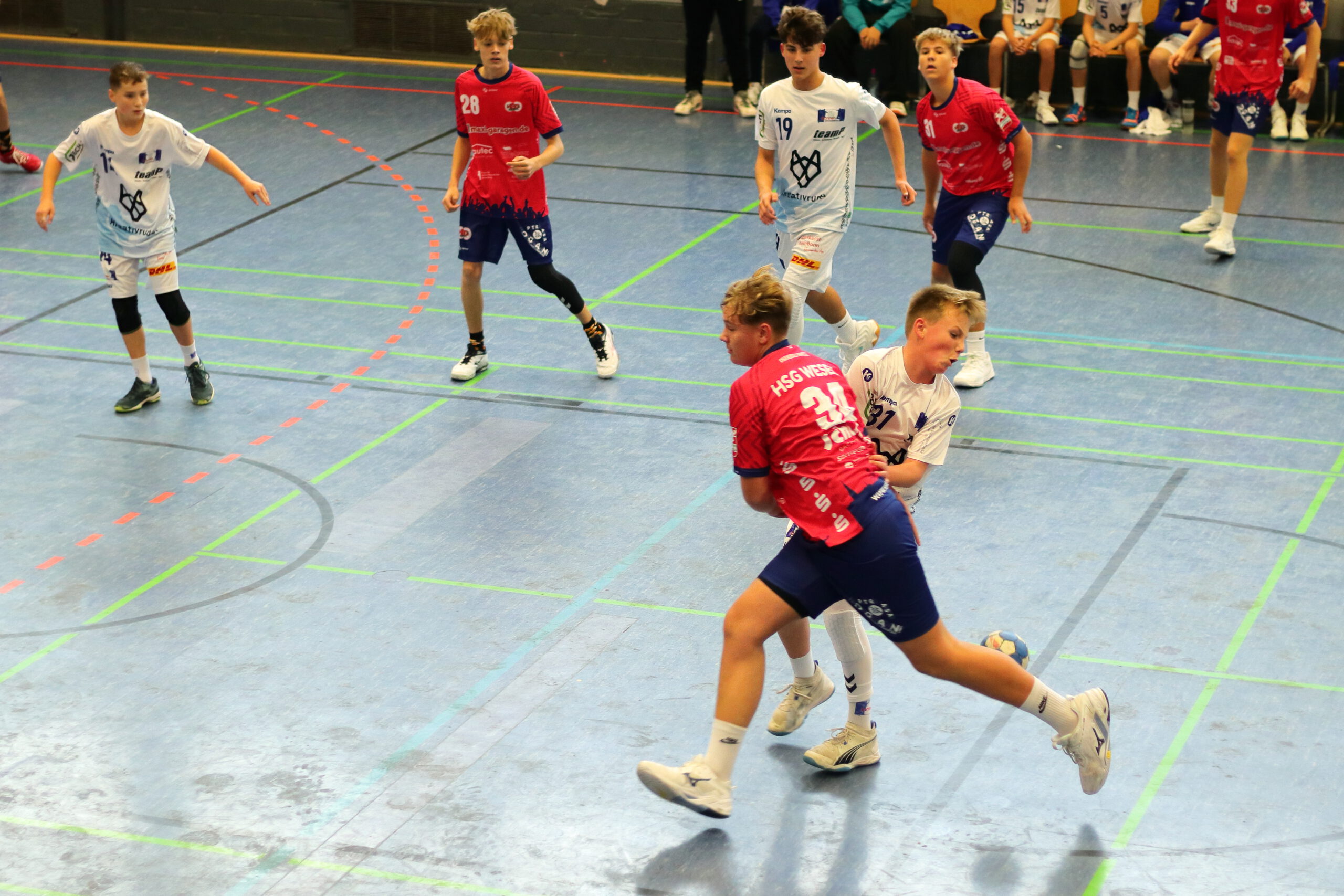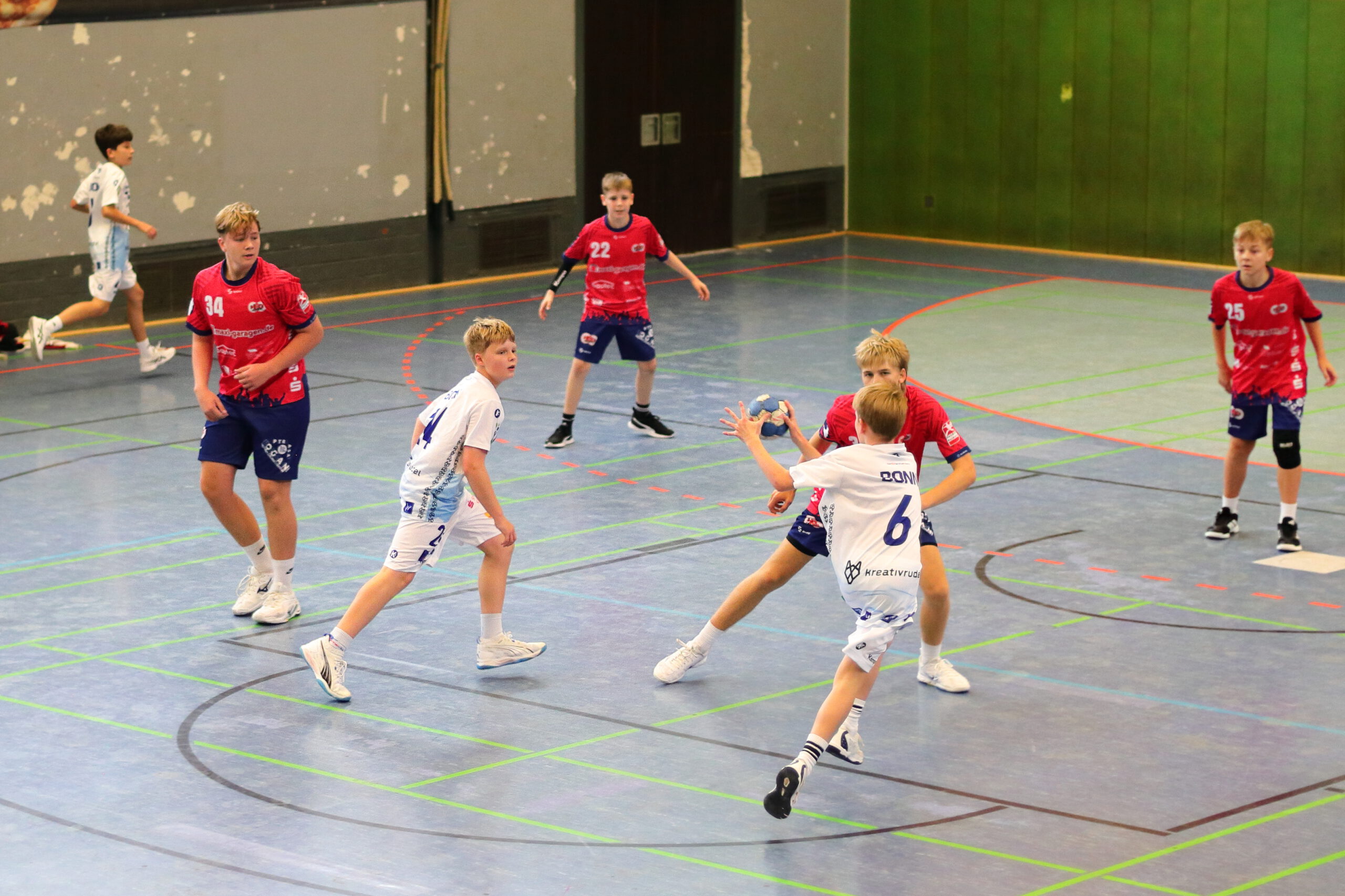 Besonders Ole war in der Anfangsphase nicht zu stoppen. Erzielte 6 seiner 7 Treffer bereits vor Minute Zehn. Auch ohne Spielgestalter Hoffi, den das Trainerteam nach 11 Minuten schonte, klappte der Angriff, aber auch die Defensive weiter gut. Der starke Fabi übernahm die Rolle als Spielmacher, zudem glänzte er mit starker Abwehr. So zogen die Bonner Jungs auf 21:11 zum Pausentee davon.